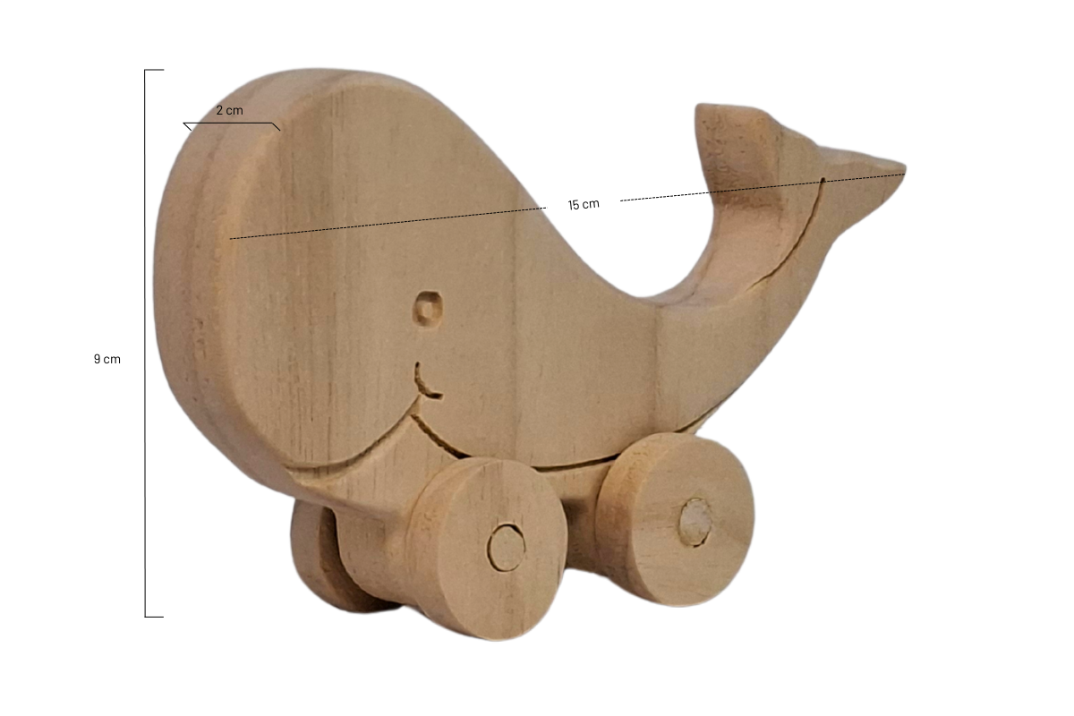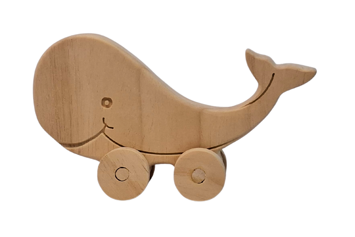 Tekerlekli Balina Oyuncak Hayvan Figürü - Doğal Masif Ahşap
