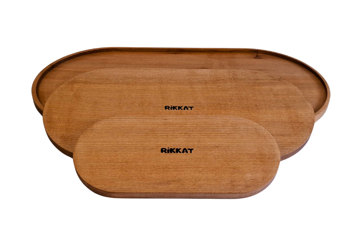 Sofralarınıza sıcaklık ve doğallık katmak için tasarlanan masif ahşap servis tabakları, hem günlük kullanım hem de özel davetler için mükemmeldir. CNC ile hassas kesim sonrası elde zımparalanarak pürüzsüz bir yüzeye kavuşturulur. Doğal yağlarla korunan yüzey, gıdayla temas için tamamen güvenlidir. Ahşabın doğal dokusu sayesinde her tabak kendine has bir görsellik taşır, bu da sofranızı daha davetkâr kılar.
