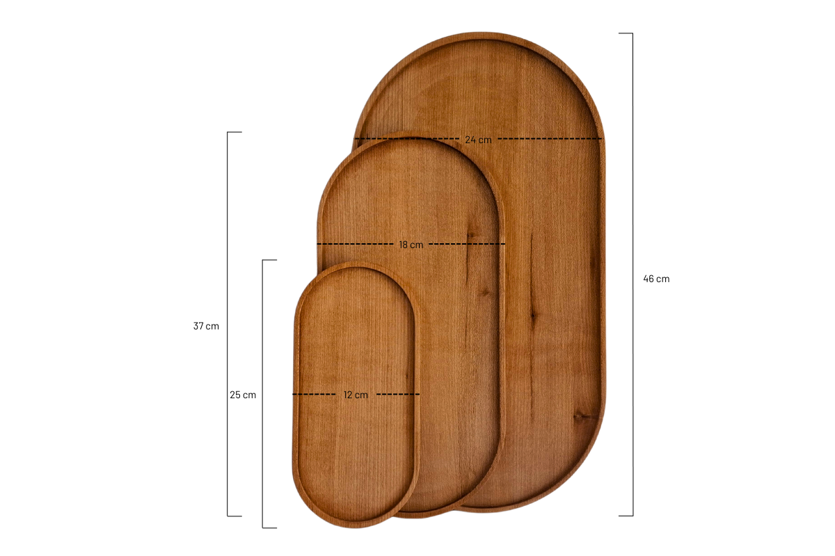 Sofralarınıza sıcaklık ve doğallık katmak için tasarlanan masif ahşap servis tabakları, hem günlük kullanım hem de özel davetler için mükemmeldir. CNC ile hassas kesim sonrası elde zımparalanarak pürüzsüz bir yüzeye kavuşturulur. Doğal yağlarla korunan yüzey, gıdayla temas için tamamen güvenlidir. Ahşabın doğal dokusu sayesinde her tabak kendine has bir görsellik taşır, bu da sofranızı daha davetkâr kılar.