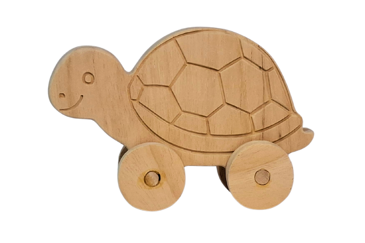 Tekerlekli Kaplumbağa Oyuncak Hayvan Figürü - Doğal Masif Ahşap B46CZCPUGD