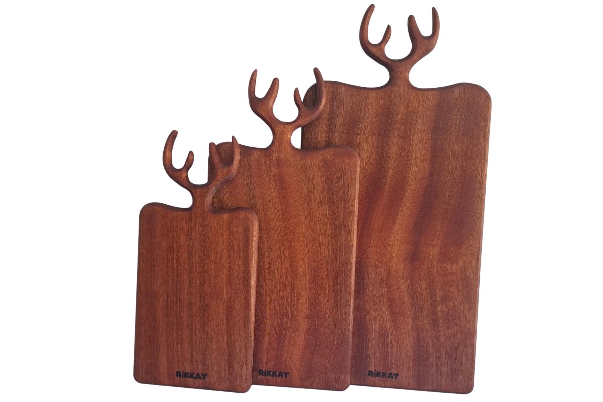Geyik Boynuzlu Doğal Masif Ahşap Kesme Tahtası Seti