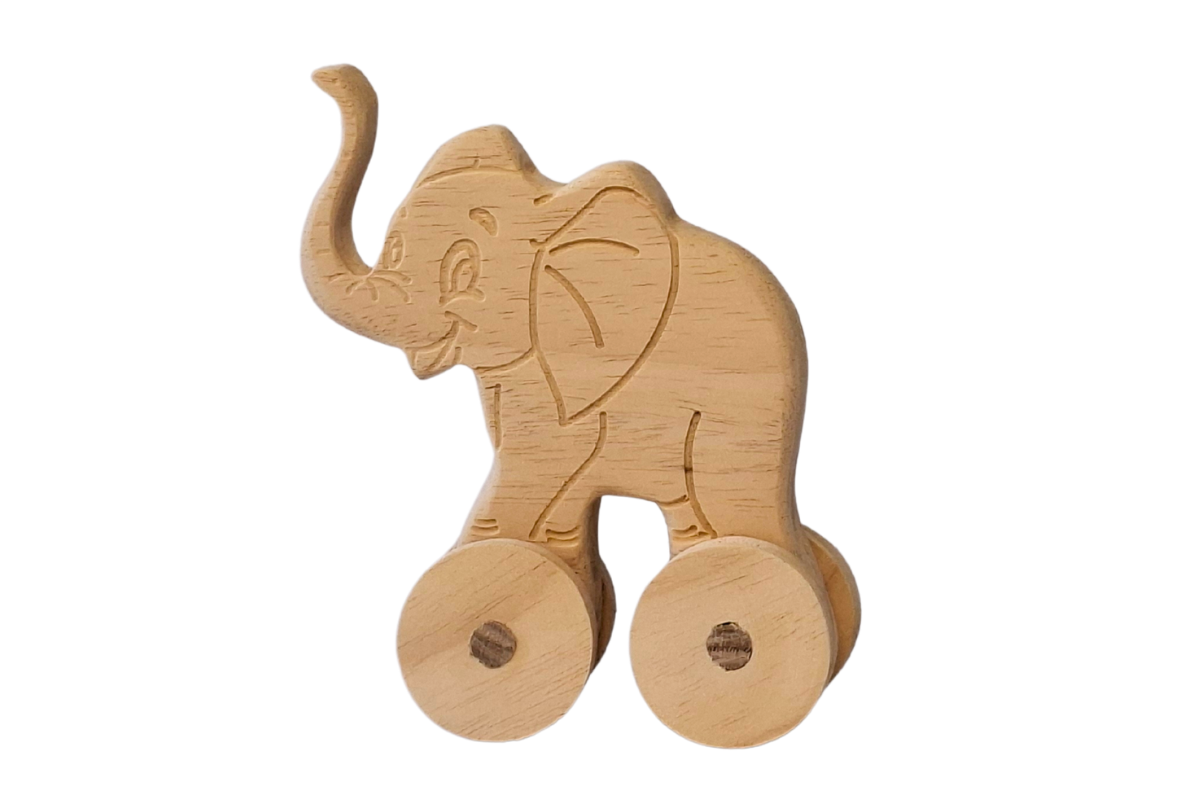 Tekerlekli Fil Oyuncak Hayvan Figürü - Doğal Masif Ahşap