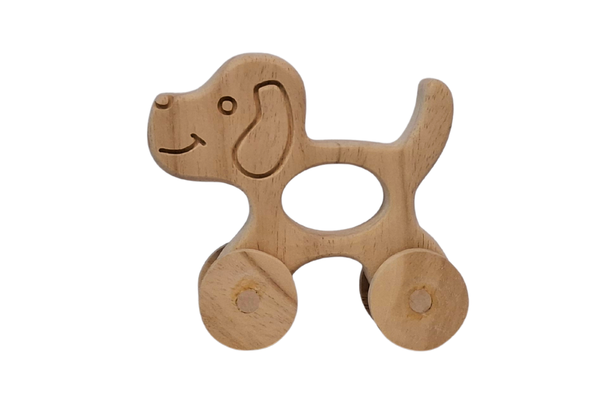 Tekerlekli Köpek Oyuncak Hayvan Figürü - Doğal Masif Ahşap