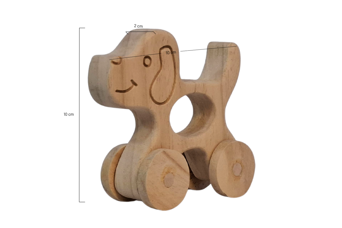Tekerlekli Köpek Oyuncak Hayvan Figürü - Doğal Masif Ahşap QRNR5NQMHK