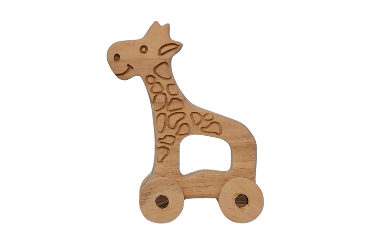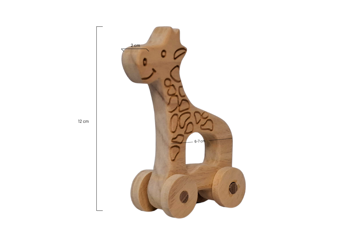 Tekerlekli Zürafa Oyuncak Hayvan Figürü - Doğal Masif Ahşap GWM5U6NGFS